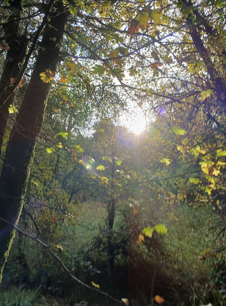 This space and time then invites a moment to take stock. To notice. To see what is behind and what lies ahead. To contemplate the richness of the present moment, as something whole and worthwhile in itself. It is not necessary to be rushing forwards to the next day, week, turn of the wheel, festival, observance, ritual. Being in the fading light of the afternoon sun, watching as leaves flutter down from the trees, noticing the change in the birdsong in the woods– all of these are part of now. They weave together the rich sense of being alive. This time invites sitting down, slowing down, breathing a soft exhale.